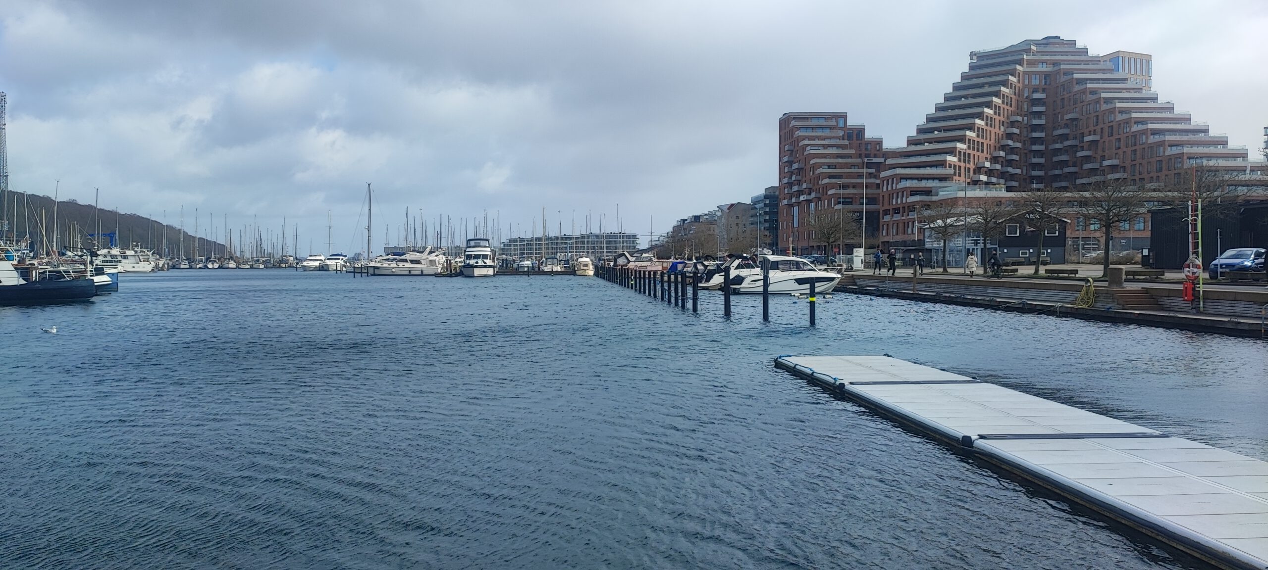 Heute stehen wir im Jachthafen von Mariager. Ein sehr schöner Standort mit gutem Service. Eine sehr nette Wohnküche mit großer Glasfront schützt vor dem kalten Wind und ergibt einen schönen Blick auf den Hafen und den Fjörd.